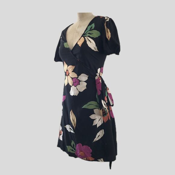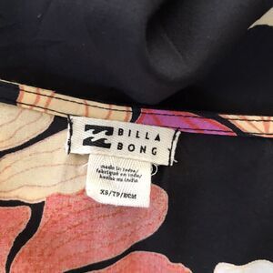 Billabong Black Colorful Floral Short Sleeve V Neck Mini Wrap Dress - XS