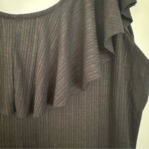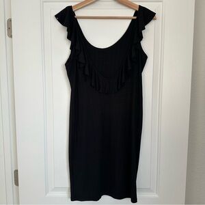 Billabong Black Cotton Ribbed Dress with Ruffle Sleeves
