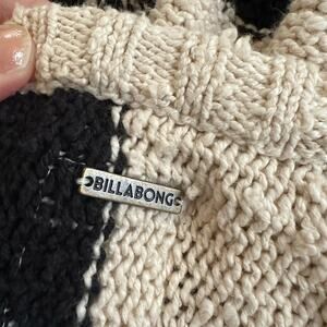 Billabong Black Cream Stripe Beachy Sweater Boxy Nubby Cotton