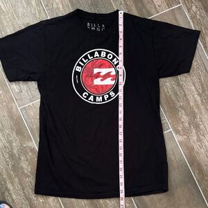 Classic black tee with a striking red and white Billabong logo. Perfect for casual wear.