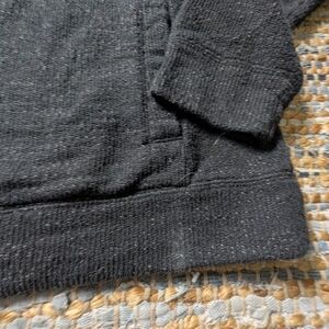 Billabong men’s medium hoodie in a black speckled textured knit, featuring a cozy sherpa-lined hood, four-button placket with Billabong-branded buttons, chest pocket with logo tab and zip closure, elbow pads, and classic kangaroo pocket. Made from 60% cotton and 40% polyester for breathable warmth and comfort. Measures approximately 27" length and 21" flat lay chest