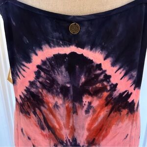 Billabong Black and Pink Tye-Dyed Maxi Sundress with Spaghetti Straps SZ L