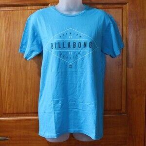 Billabong Blue Short Sleeve Logo Spellout Tshirt T-shirt Organic Cotton Small