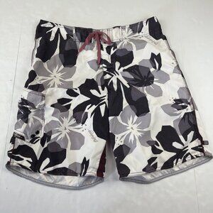 Billabong Boardshorts Swim Trunks Men’s 36 White Black Hawaiian Floral Pockets