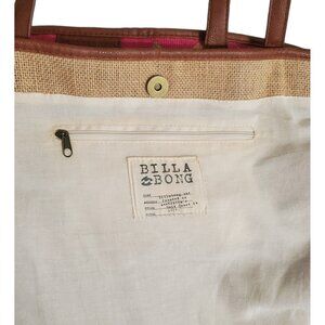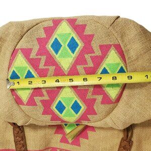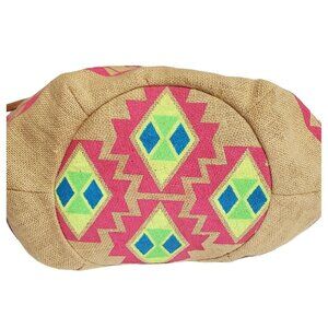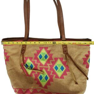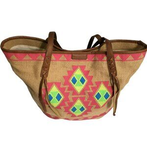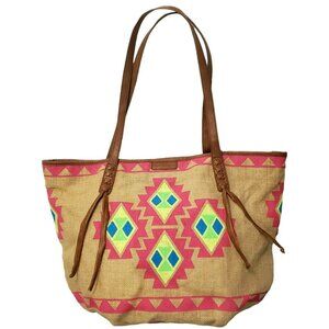 Billabong Boho Tote Beach Bag Southwest Purse Aztec Burlap Lined Hobo Tan Pink