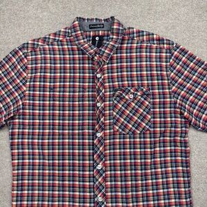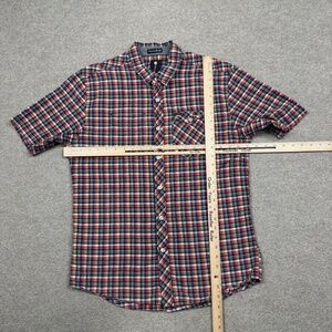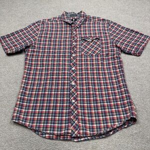 Billabong Button Up Shirt Men's Size M Red Short Sleeve Plaid Collared Surfer