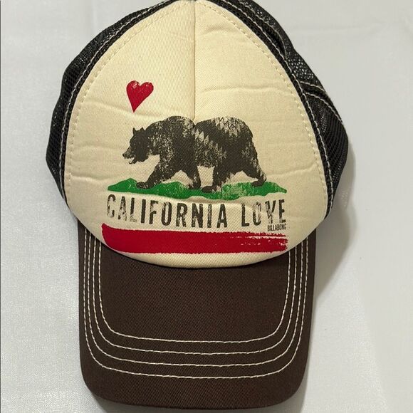 Billabong California Love Bear Snapback Cap Gray Mesh Trucker Hat