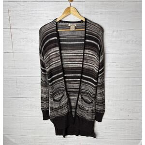 Billabong Cardigan Duster Womens Size S/P Brown with Pockets Striped Open Earthy
