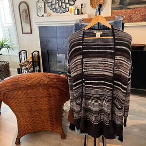 - Billabong Women's Brown Striped Open Cardigan Duster with Pockets