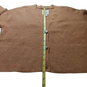 Excellent Preowned Condition! Size SMALL. Please see photos for measurements. Mustard yellow. More vibrant in real life. Please see the stock photo. V neck crop length button up cardigan. Some stretch. Sweater knit material. 50% Acrylic, 29% Polyester, 15% Nylon, 6% Elastane.