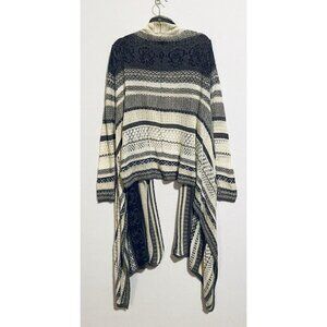 Billabong Cardigan Sweater Womens Large Ivory Brown Open Front Pointelle Drapey