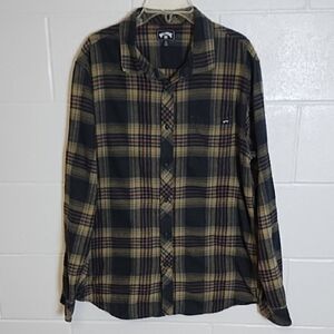 Billabong Casual Button-Down Flannel Shirt in Black & Tan
