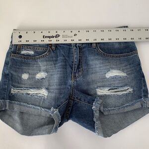 Billabong Coast Ryder Denim Shorts Women 27 Blue Distressed Raw Cuff Hem Beach