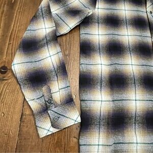 Billabong Coastline Plaid Flannel Long Sleeve Button up Shirt Purple Yellow Men