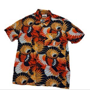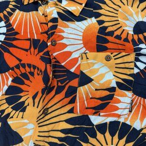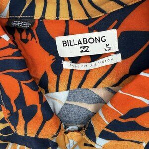 Billabong Core Fit Mens M Orange Blue Hawaiian Aloha Shirt Sun Pattern