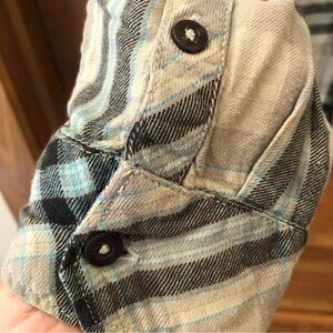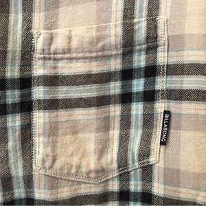 Billabong /Core Fit /Stretch/Flannel / button up/ Size M /still has extra buttons/pre owned still has a lot of wear/ has been laundered/ soft :)