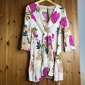Billabong Divine Mini Floral Dress Bell Sleeves Women’s Medium Crinkle Beachy