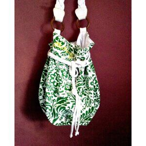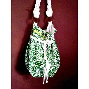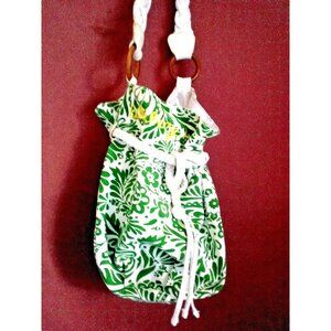 Billabong Drawstring Floral Fabric Shoulder Bag Green White Casual Beach Boho