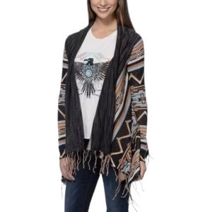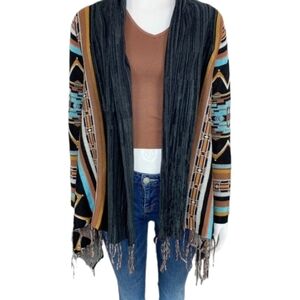 Billabong Dream Chaser Cardigan Sweater Aztec Boho Fringe Hem Multicolor sz S