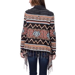 Billabong Dream Chaser Aztec Print Fringe Hem Cardigan Sweater