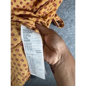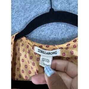 Billabong Dress Women Large Yellow Short Sleeve Graphic Print Wrap Mini Summer