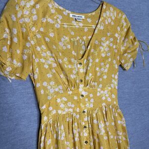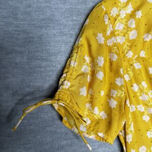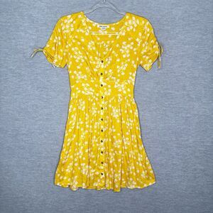 Billabong Dress Women Size XS Yellow Floral Button Down Shirt Beach Surfer Twist