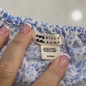 Billabong Dress Womens Medium Blue White Floral Sundress Maxi Strappy Summer Boho