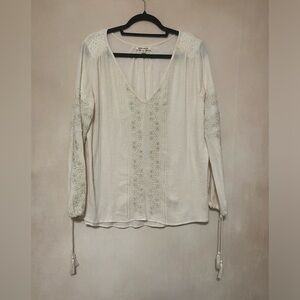 Billabong EUC boho metallic embroidered relaxed fit peasant top 100% cotton L