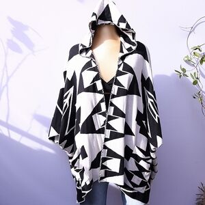 This hooded poncho is another must on your wardrobe. Perfect for chilly summer nights or just because! Since it's a poncho, it can fit any size.