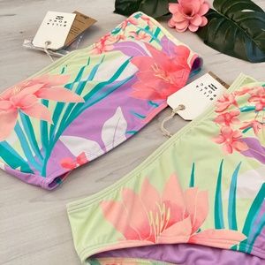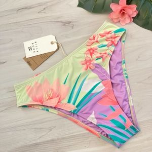 Covered in pop color tropicals, this bikini is made from soft and stretchy, recycled swim fabric.