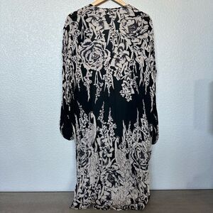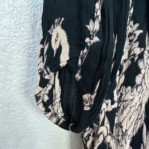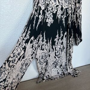 Women’s size M/L Billabong long black and tan brown floral thin fabric swim cover up dress or tunic in excellent preowned condition with no flaws, clean nonsmoking home. Approx 22” pit to pit across bust, 32” pit to lower hem side length.