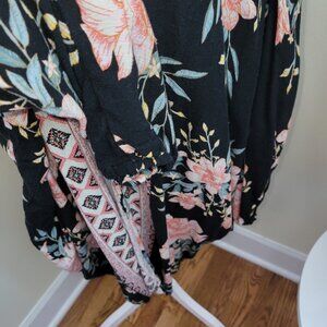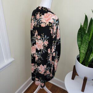 Billabong Floral Kimono Black Pink Floral Open Front Cardigan Women's S/M