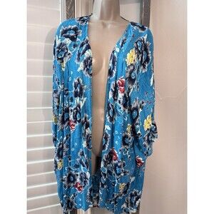 Billabong Floral Kimono Cardigan Cover Up Turquoise Bohemian Flowy