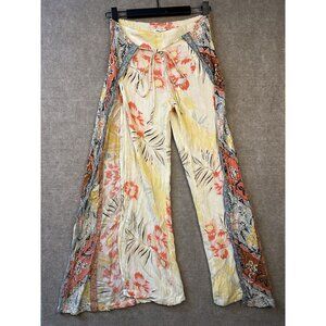 Billabong Floral Pants Women Small Wide Tie Waist Pull On Wrap Split Open Side