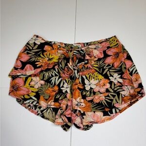 Billabong Floral Print High Waist Tie Front Shorts Medium