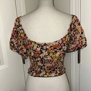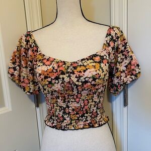 Billabong Floral Smocked “get along” puff sleeve Women's crop Top