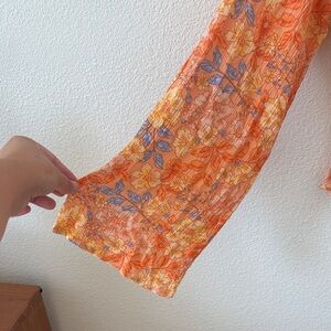 Billabong Floral V-Neck Blouse - Orange and Blue