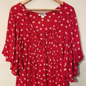 Billabong Red Gauze Kimono Sleeve Blouse - Tie neck