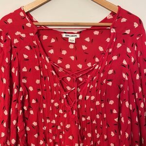 Billabong Flowy Tie Neck Red Floral Top Medium