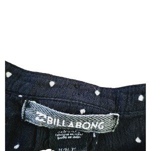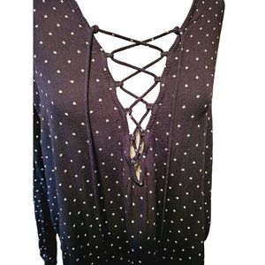 Billabong Flowy blouse size Medium lace up front long sleeve polka dot blue
