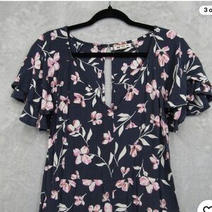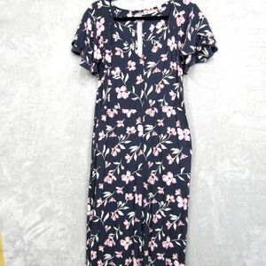 Billabong Fluttering Heart floral Blue Jumpsuit Small
