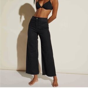 Billabong Free Fall Stretch Crop Wide Leg Pants in Black. Dial in a retro vibe in these wide-legged pants cut to a cute cropped length from airy cotton with a touch of stretch. New without tags