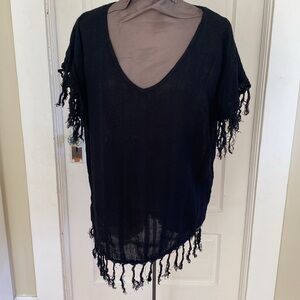Billabong Designers Closet semi sheer fringed top or swimsuit cover size large.