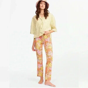 Floral with light flare. Excellent pre loved condition, no flaws or stains. Only wash wear would be on the waistband.