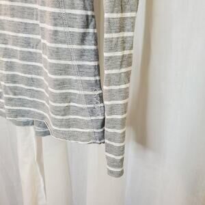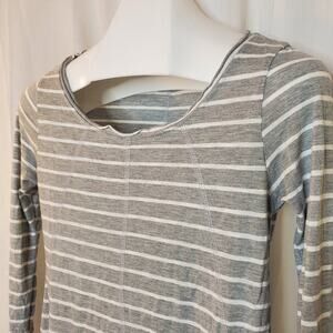 Billabong Gray/White Striped Longsleeve. Super comfortable tee is heather gray with white horizontal stripes. Stitching detail on the front and back. Good used condition, size medium.