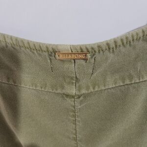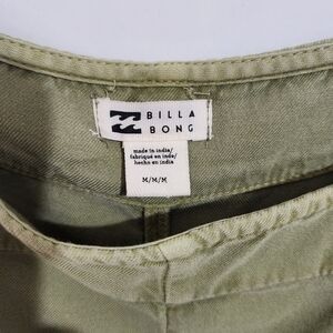 Stylish green denim overalls with front pocket from Billabong. Perfect for casual wear. Straps are adjustable. Inseam is 3 inches. Waist at 16 inches, see photos. This is a Juniors. Size medium.