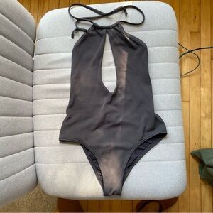 Billabong Grey Black Halter Swimsuit size medium one piece