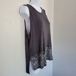 Billabong Grey Tank Top Sleeveless Lightweight Slit Sides Large White Pattern