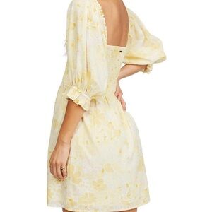 - Yellow/pink/white floral pattern (fourth pic shows it up close), is designed for sleeves to be worn on the shoulders but could also be worn off the shoulders