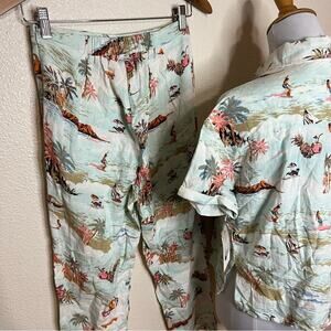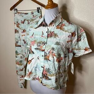 Billabong Hana Koa Beach surfer short sleeve button shirt & pants set NEW SMALL